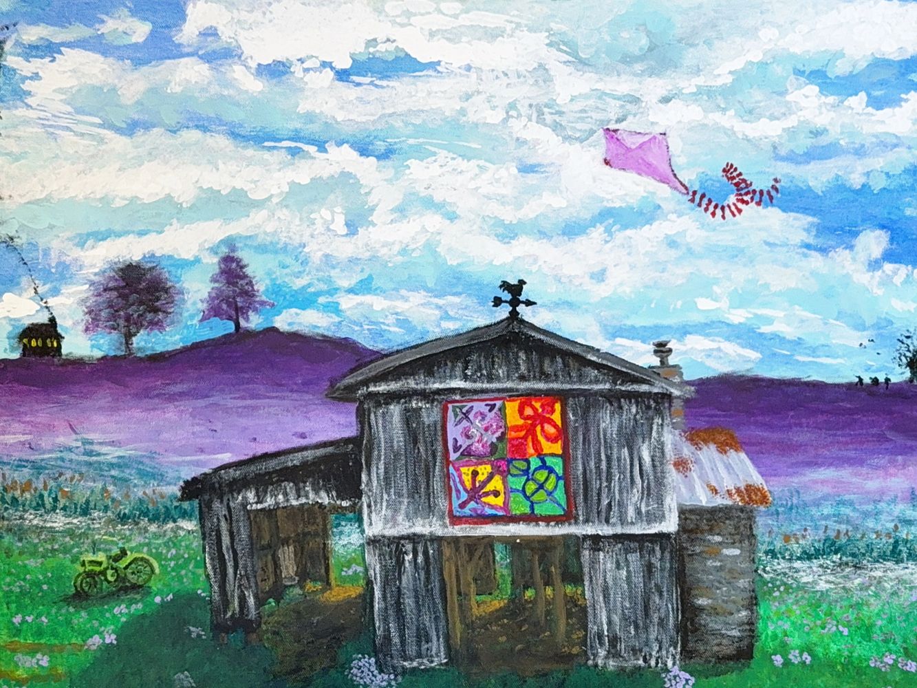 For 31 years, Kellogg worked as a land surveyor with Thoroughbred Engineering, walking property lines, reading terrain, and translating landscape into measured truth. This deep understanding of space and structure continues to inform both his visual art and his yoga practice.